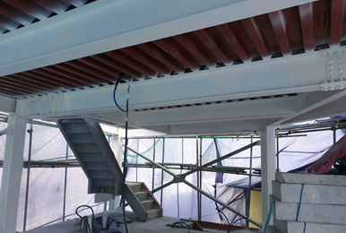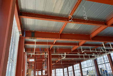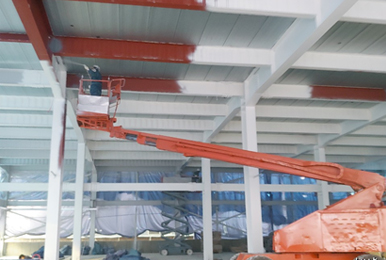 주요철골구조(보,기둥)에 1시간용(800미크론) 2시간용(2,800~3,200미크론) 도장한 도막이 화재시 60~100로 발포 팽창하고 표면에 단열층을 형성 함으로써 화재열이 구조물에 접근하여 강재가 급격하게 내려 저하되는 것을 막아주어 화재로부터 인명과 재산을 보호하느대 큰 역할을 해 주는 것으로 반드시 내화페인트 공사가 필요합니다.